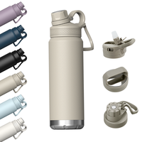 Garrafa Térmica Personalizável para Ciclismo em Aço Inoxidável de Parede Dupla com 4 Tampas